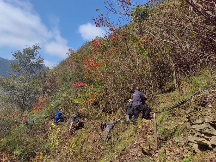 險情即命令,行動顯擔(dān)當。面對復(fù)雜地形與植被纏繞的“攔路虎”,金米黨支部想方設(shè)法、果斷出擊,由黨員帶頭,組織全體在崗人員趕赴現(xiàn)場開展義務(wù)整治。他們自帶砍柴刀、繩索等工具,對嚴重影響施工安全的荊棘雜草進行全面清理。